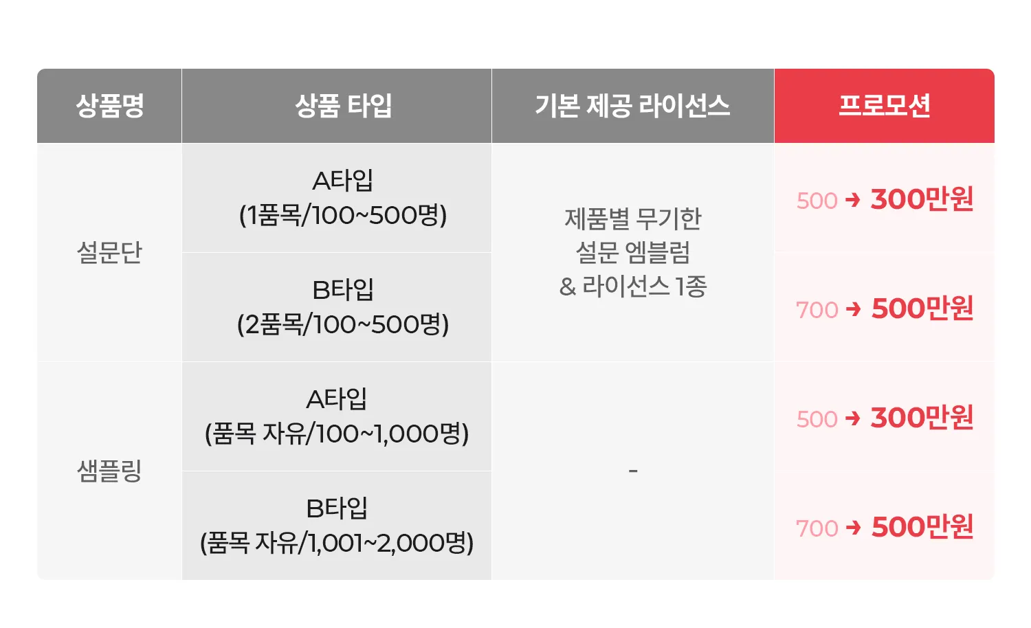 기존 설문단, 샘플링 옵션으로만 안내되던 리뷰 확보 패키지가