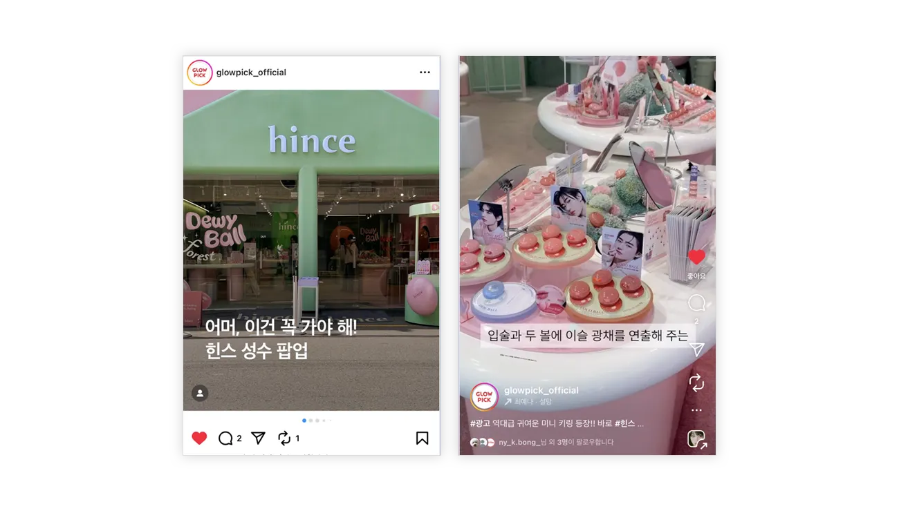 글로우픽 공식 인스타그램 계정에서 단독으로 노출되어 제품의 주목도를 상승시킬 수 있는 콘텐츠입니다.